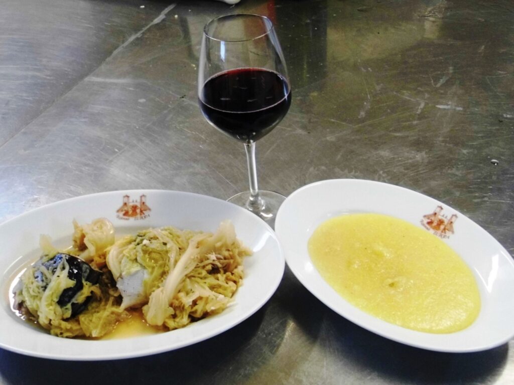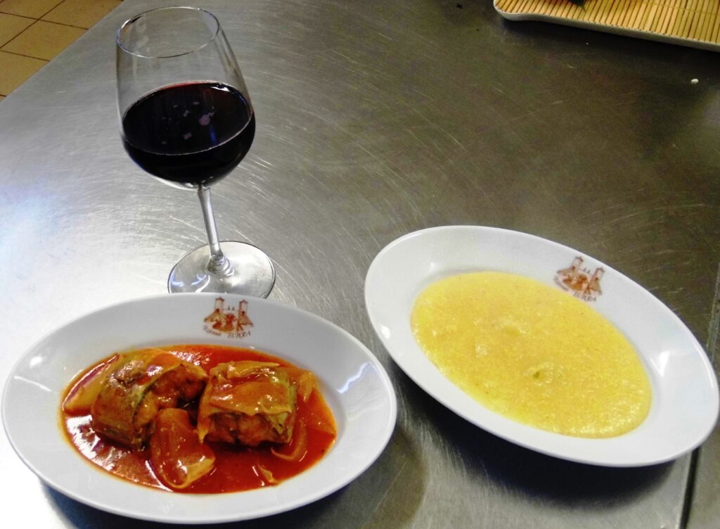 Altro piatto tradizionale di grande impatto visivo e di ancora più potente carattere all’assaggio, è il brodetto alla comacchiese detto “a becco d’asino”. Una ricetta che prevede l’utilizzo per la cottura dell’anguilla tagliata a pezzi, cipolla, aceto e concentrato di conserva. Un piatto che rivela un’esplosione di sapori e che risulta sapientemente attenuato dalla DOC Bosco Eliceo Fortana in versione ferma, in grado di compensare in modo efficace il sempre problematico contrasto con l’aceto e di accompagnamento al sapore deciso, tendente al dolce-acido, di cipolla e pomodoro.