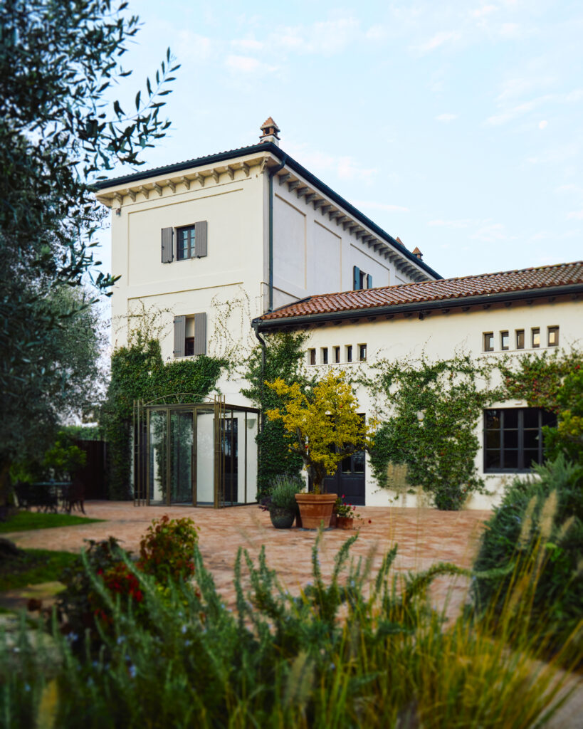 Percorri la via che da Verona ti porta nella Bassa Veronese, verso Oppeano, per circa venti chilometri. I capannoni che spesso fiancheggiano la strada oscurano la bellezza della riserva naturale della Valle del Feniletto. Arrivi al ristorante della Famiglia Rana, che accorpa ben sessantaquattro ettari di biodiversità ed entri in un elemento inserito in questo ambiente naturale, percependolo immediatamente. Gianluca Rana – figlio di Giovanni Rana, patron della pasta ripiena, uomo di rara umiltà che si è fatto da solo – ha scelto questo scrigno di bellezza per condividerla con altri. Ecco che un edificio, un tempo dedicato allo stoccaggio di tabacco e riso, si trasforma in un luogo unico, dove l’incontro tra opere antiche, moderne e plurimillenari fossili contribuisce a farti sentire fuori dal tempo.