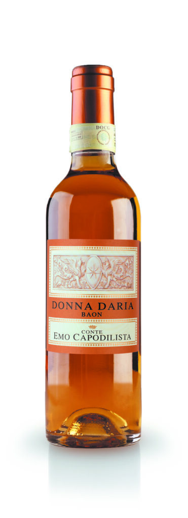 Più avvolgente e classica l’interpretazione di Alice Spimpolo per Conte Emo Capodilista – La Montecchia, con “Donna Daria” Fior d’Arancio DOCG Passito 2020. Un vino che gioca sulla profondità aromatica e sulla persistenza, capace di accompagnare momenti lenti e meditativi, quando il vino diventa parte del racconto più che semplice chiusura del pasto.