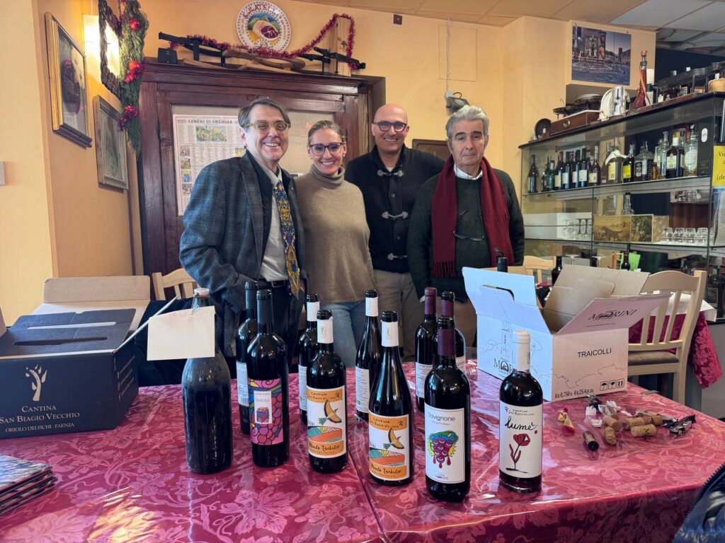 Oggi a “dirigere l’orchestra” c’è Alieto, con i figli Flavio e Danilo: e non è solo una metafora. Quando in sala c’è un compleanno, la tromba e la chitarra entrano davvero in scena, trasformando il pranzo in un momento di condivisione autentica, mai forzata. Seduti a quel tavolo, tra piatti che parlano la lingua della Romagna senza traduzioni, il centesimino ha trovato il suo contesto naturale. Non un palcoscenico, ma una casa. Ed è forse lì che questo vino si capisce meglio.
