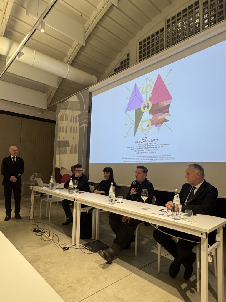 Il percorso artistico – raccontato al debutto sempre su Vitae dedicato alla nascita del dialogo tra Arte e Vino – si arricchisce oggi di un nuovo capitolo. Con la presentazione ufficiale del 27 febbraio, l’installazione O.O.S. (Out Of Stock), firmata da Paolo Gonzato, entra in modo permanente nella sede AIS nazionale di Milano.