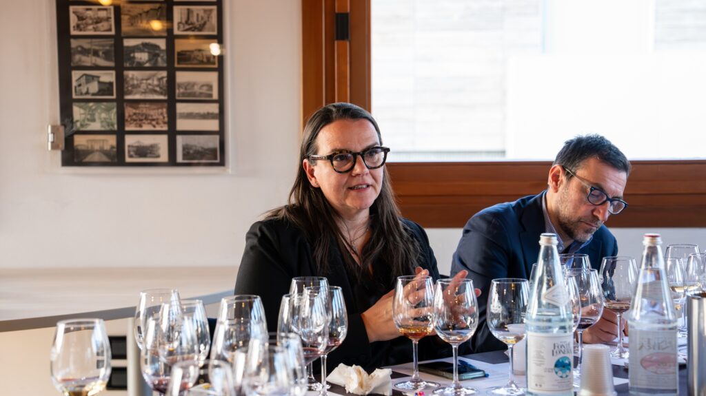 Tra un ricordo del Master Of Wine Nicolas Belfrage, scomparso nel 2022, che lo invitò a Londra al loro simposio per parlare davanti a un vero e proprio parterre de rois e aneddoti legati alla nascita del suo novello, sulla spinta del successo del Beaujolais Nouveau, si arriva alla mescita del primo dei tre vini dolci e passiti, categoria nella quale Maculan recita un ruolo fondamentale in Italia. È un caso probabilmente raro il rapporto che questa cantina intrattiene con questa tipologia di vini, tanto che quasi il 20% della produzione totale (circa 650 mila bottiglie all’anno) è rappresentata proprio dai vini dolci. Color ambra, ricchissimo di note di cera d’api, miele di acacia e albicocca disidratata, questo Moscato Fior d’Arancio è certamente una sorpresa, visto lo spessore e la freschezza, anche gustativa, con il quale si è conservato dopo tutti questi anni. L’appassimento delle uve avviene in fruttaio per circa un mese, poi la fermentazione in tini di acciaio e la sosta in bottiglia. Il nome? Anche in questo caso prende quello della via del vigneto dal quale arrivano le uve.