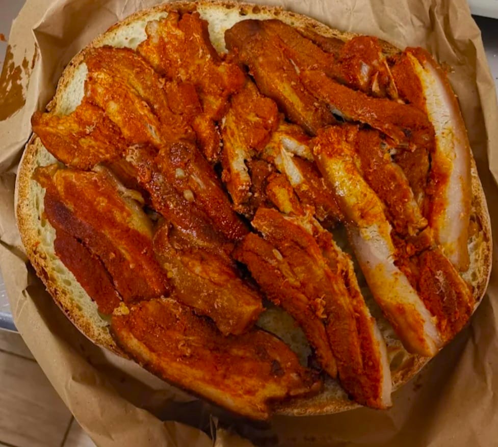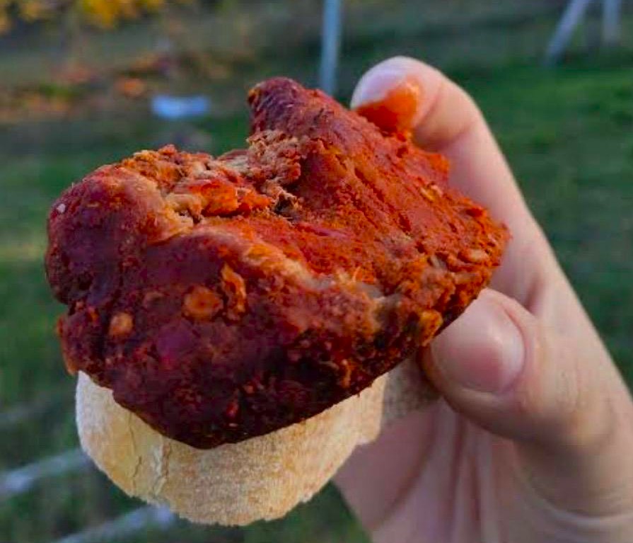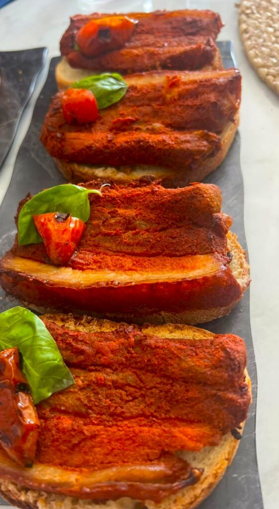 Al termine della cottura, la carne si distingue per il suo mantello rosso fuoco e il sapore ricco, grazie alla miscela di peperoncino e aceto che ne esalta l’aroma.