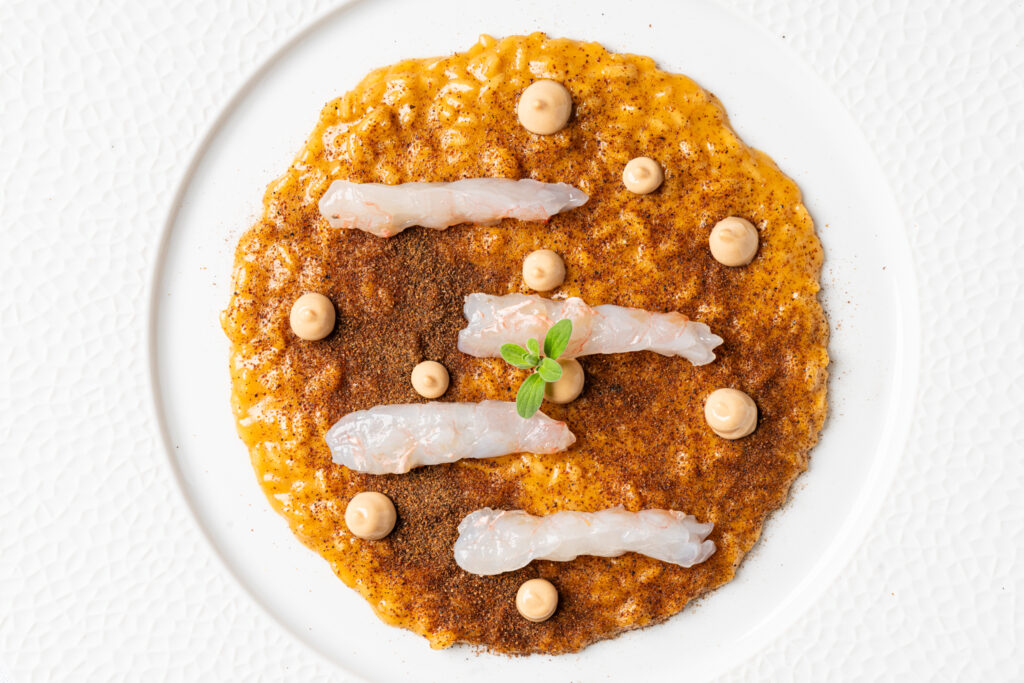 Mi accompagnano al tavolo con la baia di Tancredi davanti e siedo nelle comode poltroncine grigio perla, mentre con sollecitudine mi porgono la carta dei vini e il menu. La prima curiosità è verso i vini: una carta di notevole spessore. Si inizia con i Franciacorta con una discreta selezione, qualche Trentodoc, Alta langa e poi spazio allo Champagne, una sezione di un’ampiezza rara. Anche nei bianchi fermi tanta attenzione alla Francia, con la Borgogna al primo posto. Nei rossi buona presenza di Toscana e ancora molta Borgogna (con profondità di annate). Non manca il resto del mondo, per qualche incursione solleticante. Poca la scelta al bicchiere, però, anche se è previsto un abbinamento ai menu degustazione. Comunque, con circa 800 etichette dai ricarichi non eccessivi, si potrebbe accendere il desiderio di ordinare una bottiglia. Il sommelier è Lorenzo Alutto, langaiolo di Treiso dalla lunghissima esperienza internazionale in Europa e in Asia dove, tra gli altri, ha lavorato da Otto e mezzo Bombana a Hong Kong, l’unico tristellato italiano all’estero. Risulta evidente la coerenza tra percorso professionale e scelta enoica.