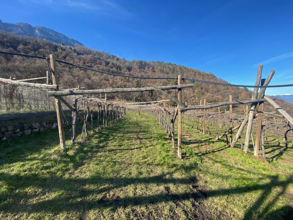 Sono solo tre i piccoli vigneti scelti, di altrettanti soci – non hanno un nome specifico se non quello del loro proprietario – per un totale di 1,3 ettari: due sono situati appena sopra il paese di Caldaro, verso la località di San Nicolò a circa 550 metri di altitudine, mentre la terza si trova a Mezzan, leggermente più in basso a 450 metri. Tutte esposte a est, con viti che cominciano ad avere un’età importante, fino a 40 anni, beneficiano della celeberrima brezza “Ora” che arriva da sud dal Lago di Garda, ma anche di quelle fresche che calano la notte dal massiccio della Mendola che svetta imponente su Caldaro. “Abbiamo uno sbalzo termico importante tra la notte e il giorno, anche di 15 gradi e poi terreni simili ma differenti” afferma ancora il Kellermeister riferendosi a suoli che da una parte sono ricchi dei depositi di ghiaia, sabbia e dolomia, portati qui 25mila anni fa dal ghiacciaio che ricopriva la zona, dall’altro dalla presenza di roccia calcarea profonda molto drenante in grado di garantire un grande equilibrio idrico.