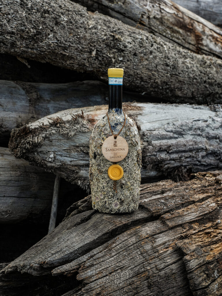L’azienda Sansonina di Peschiera del Garda, in provincia di Verona, ha scelto la laguna di Venezia per l’affinamento del suo Lugana DOC Sansonina in Laguna (90% trebbiano di Lugana, 10% altri vitigni autoctoni). Fermentazione in acciaio con lieviti indigeni e maturazione sur lie con una piccola parte in legno. Il vino affina per 16 mesi nelle acque della parte più meridionale della laguna veneziana, caratterizzata da quiete e da un eccellente ricircolo d’acqua. Le bottiglie, soli 100 magnum, sono state ancorate con corda nautica in batterie da sei unità a una profondità compresa tra i sei e gli otto metri. Il contesto dinamico e le naturali escursioni termiche permettono al vino un’evoluzione lenta, ricca di sfumature minerali e marine.